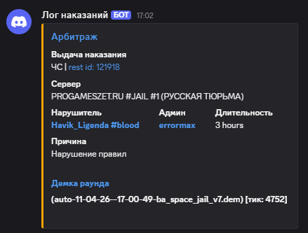 1. Ник нарушителя: errormax
